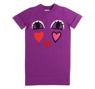 J'aime: Maille en laine mérinos, nylon et cachemire. Manches courtes. Col rond à bords côtes. Effet de motifs brodés à l'envers en forme de visage avec des joues en coeurs.